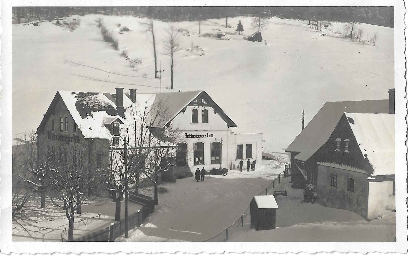 Zcela náhodně jsem nalezl pohlednici, která byla zaslána Erwinu Cettineovi, je na ní vyobrazená neznámá hospůdka s neobvyklým názvem Reichenberger Hütte . V Rakousku sice již chata stejného názvu existovala od roku 1926, a později nedaleko ní vznikla Die Neue Reichenberger Hütte 2.586 m, toto samozřejmě není ona.