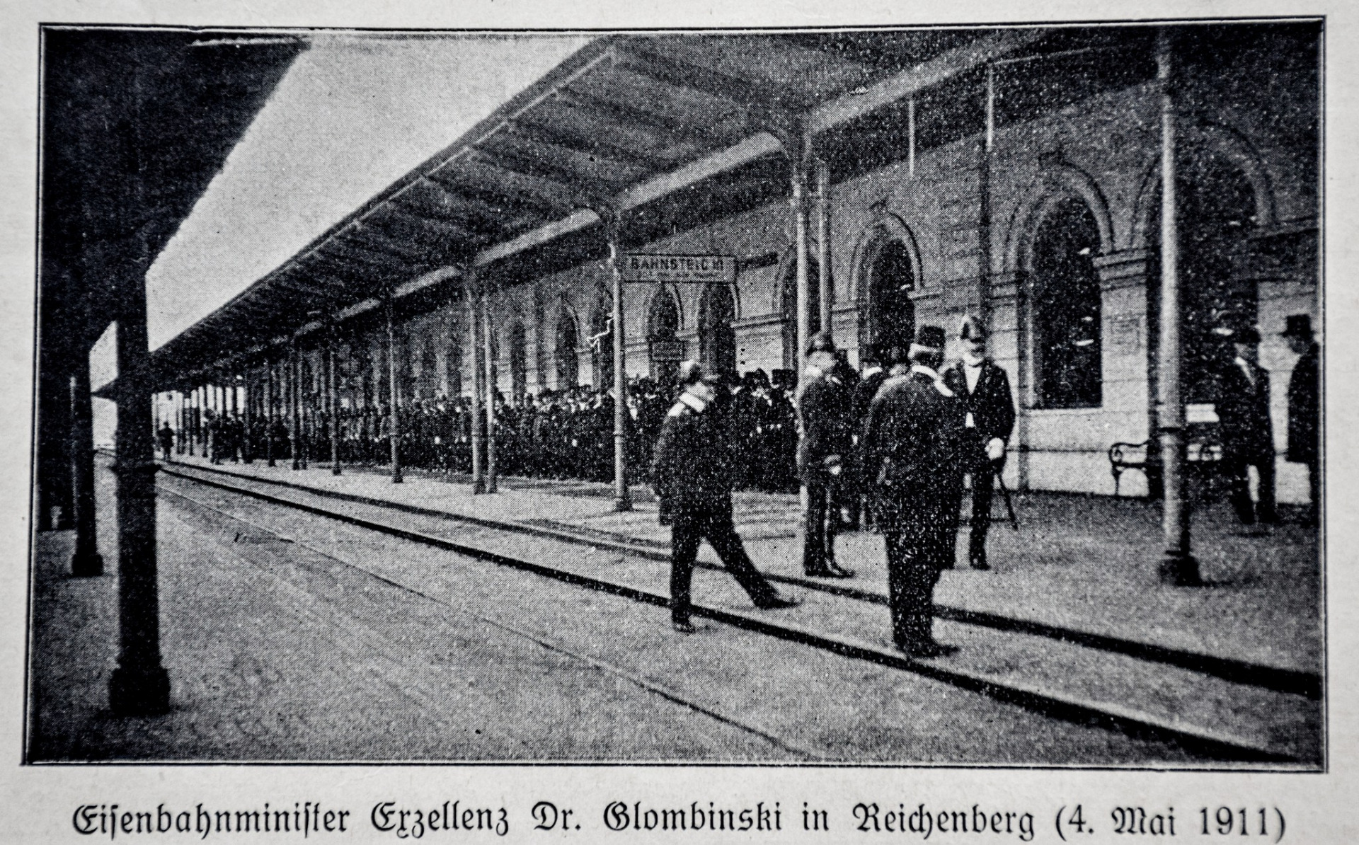 Excelence ministr železnic Dr. Glombinski v Liberci (4. května 1911)"Na