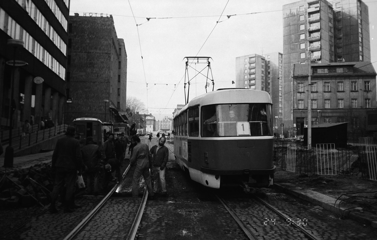 Je pátek 7.12.1984 a liberecké tramvaje budou jezdit Pražskou a Moskevskou ulicí už jen týden. V úterý 11.12. bude po ranní špičce zastaven provoz do Lidových Sadů a tramvaje od Hanychova se budou otáčet před radnicí. V noci za pátku 14.12. na sobotu 15.12. tudy pojedou naposledy a od nedělního odpoledne se už bude jezdit po přeložce kolem libereckého zámku.