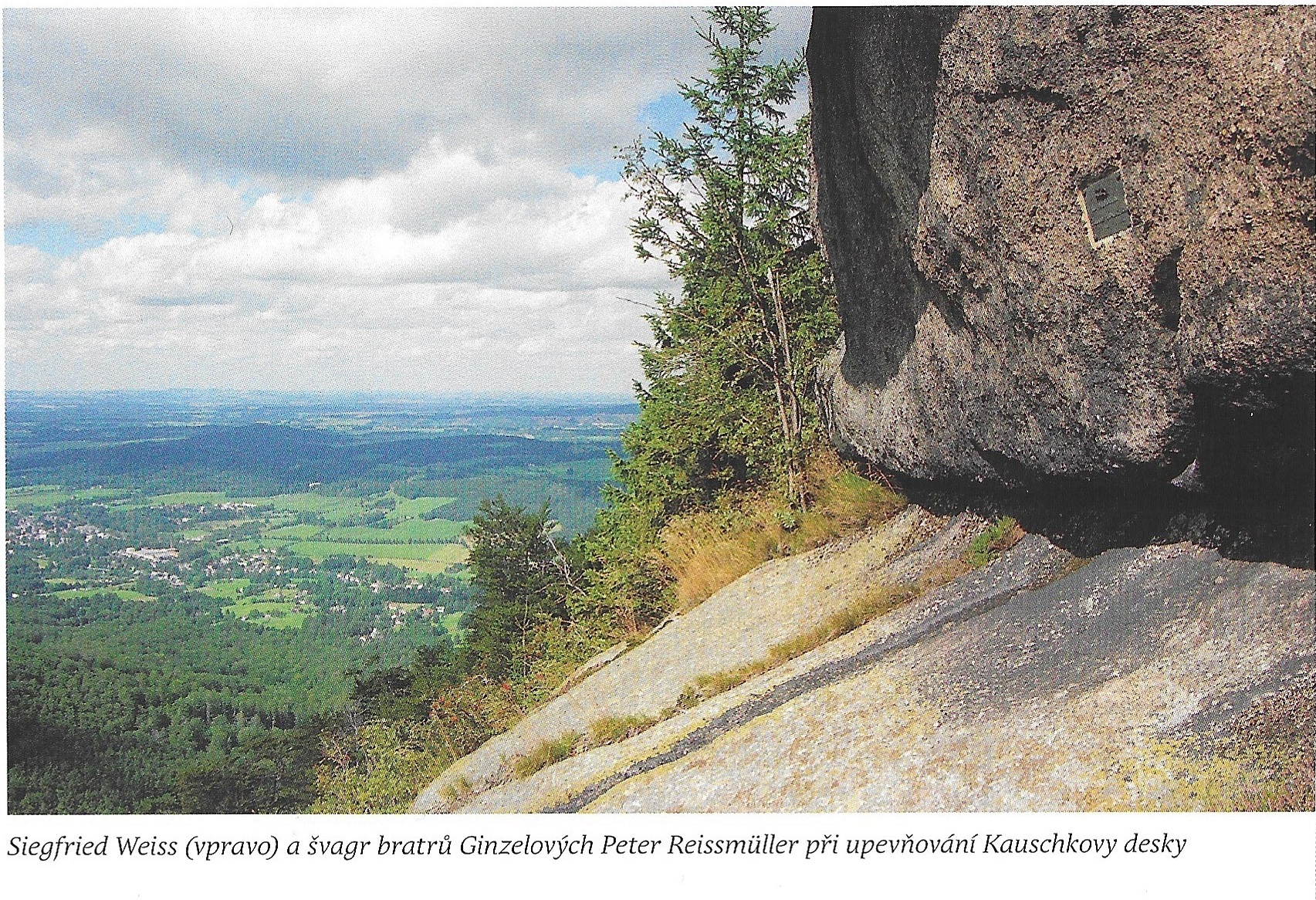 Snímek, na kterém připevňuje 9. července 1961 jablonecký rytec, fotograf, horolezec a obdivovatel Rudolfa Kauschky Siegfried Weiss na jednu ze skal Poledních kamenů vlastnoručně vyrobenou pamětní tabulku, jsem nefotografoval já, ale Wolfgang Ginzel. Často jsme si totiž vzájemně s bratry Ginzelovými vyměňovali snímky. Za těch starých časů jsme fotografovali každý snímek pro jistotu třikrát. Fotograf si ponechal ten lepší a příteli věnoval ten horší, podexponovaný nebo přeexponovaný. Jenže Wolfgangův diapozitiv shořel v srpnu 1995 v Hnojovém domě na Jizerce, a tak se "můj" snímek stal vlastně unikátem.