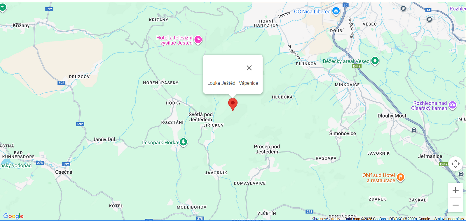 Ještědku, tekoucí od Světlé pod Ještědem k Českému Dubu. Na úbočí