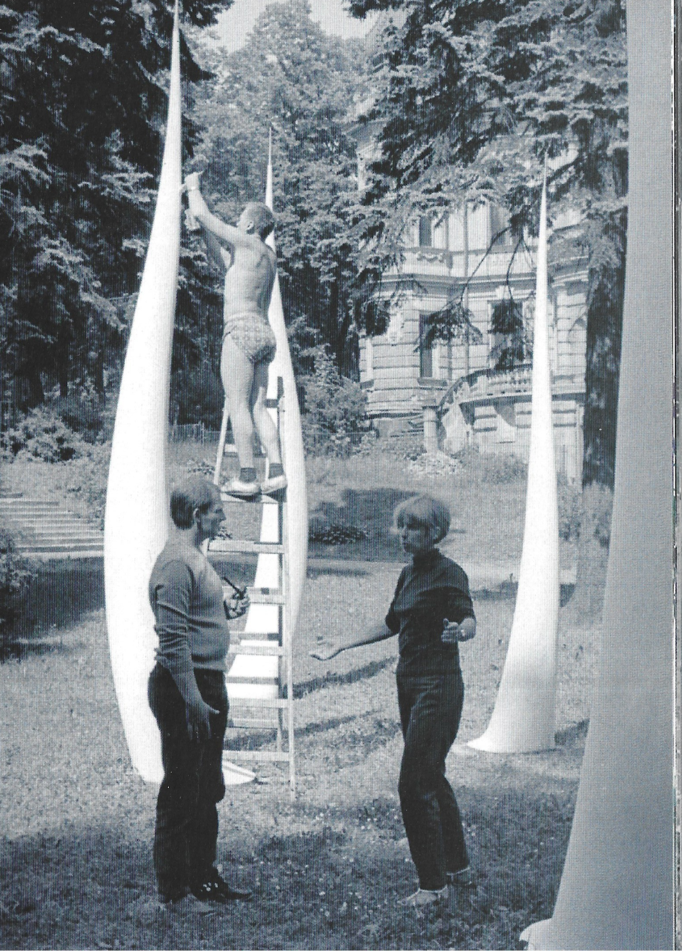 Ze starších umělců se jí zúčastnili sochaři Hana Wichterlová a Bedřich Stefan, kteří byli reprezentanty avantgardního sochařství zejména v době před druhou světovou válkou. Mladá generace chtěla právě na tyto projevy navázat. Progresivní umělecké proudy předválečných let i tehdejší současnosti byly ovšem v 60. letech téměř úplně vytlačeny z obecného povědomí, zastíněny oficiálním uměním doznívajícího socialistického realismu. Nedalo se tedy odhadnout, jak budou nová sochařská díla veřejností přijata. Reakce na výstavu byla kupodivu velmi dobrá. Pozitivní roli tu sehrála skutečnost, že na ni do Liberce přijížděli ve velkém počtu zájemci z Prahy a jiných míst, a ovšem i to, že osvícení pedagogové přímo v místě ji neváhali opakovaně prezentovat svým studentům. Také ohlas v tisku byl celkem příznivý, možná i proto, že režim se již nechtěl blamovat přiznáním ignorance v této oblasti (jako tomu bylo na samém začátku 60. let v Teplicích při výstavě Mikuláše Medka a Jana Koblasy). V následujícím roce jsme s Lídou Vachtovou připravily výstavu Rakouská socha, což byl svého druhu husarský kousek: o zahraničním projektu jsme totiž záměrně opomněly informovat odpovědná místa v Liberci, v Praze ministerstvo kultury, ministerstvo zahraničí a podobně. Do Vídně za sochaři jsme se vydaly téměř na černo, na základě fingovaného pozvání (které bylo nutné k tzv. výjezdní doložce — nevím, zda těmto termínům dnešní mladá generace vůbec rozumí). Během tří dnů ve Vídni jsme s rakouskými umělci a tamním ministerstvem kultury sjednaly výstavu, které se — vedle mladých sochařů - zúčastnili i renomovaní tvůrci Fritz Wotruba, jeho tehdy již velmi slavný žák Joannis Avramidis a Josef Pilhofer. Doba spěla k lepšímu a výstava byla přijata návštěvníky rovněž dobře. V letech 1966-67 jsme ještě stihly zorganizovat výstavu sochařů Věry a Vladimira Janouškových a přehlídku slovenského sochařství mladé generace, Teprve potom se začalo uvažovat o velkém projektu ve městě.