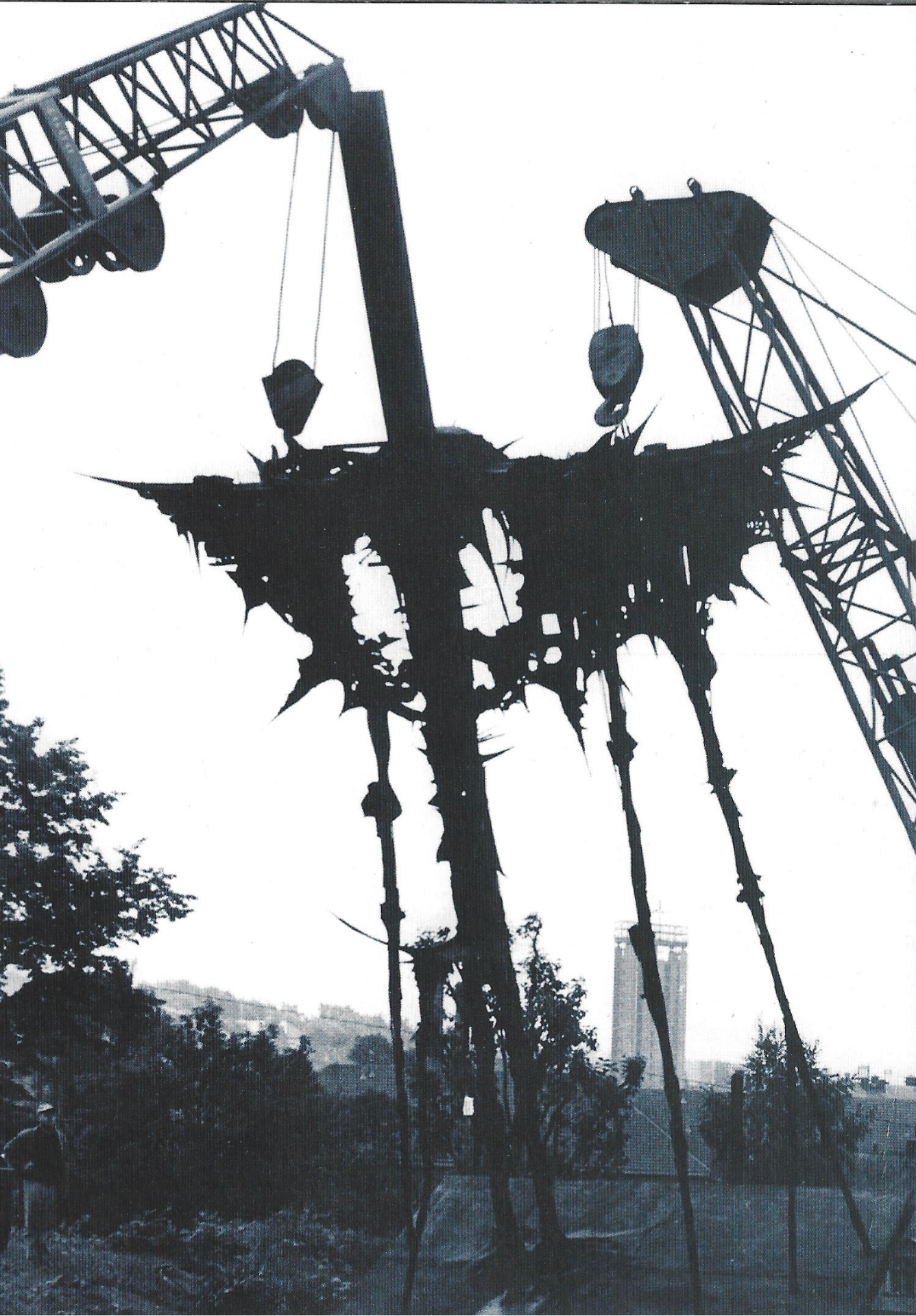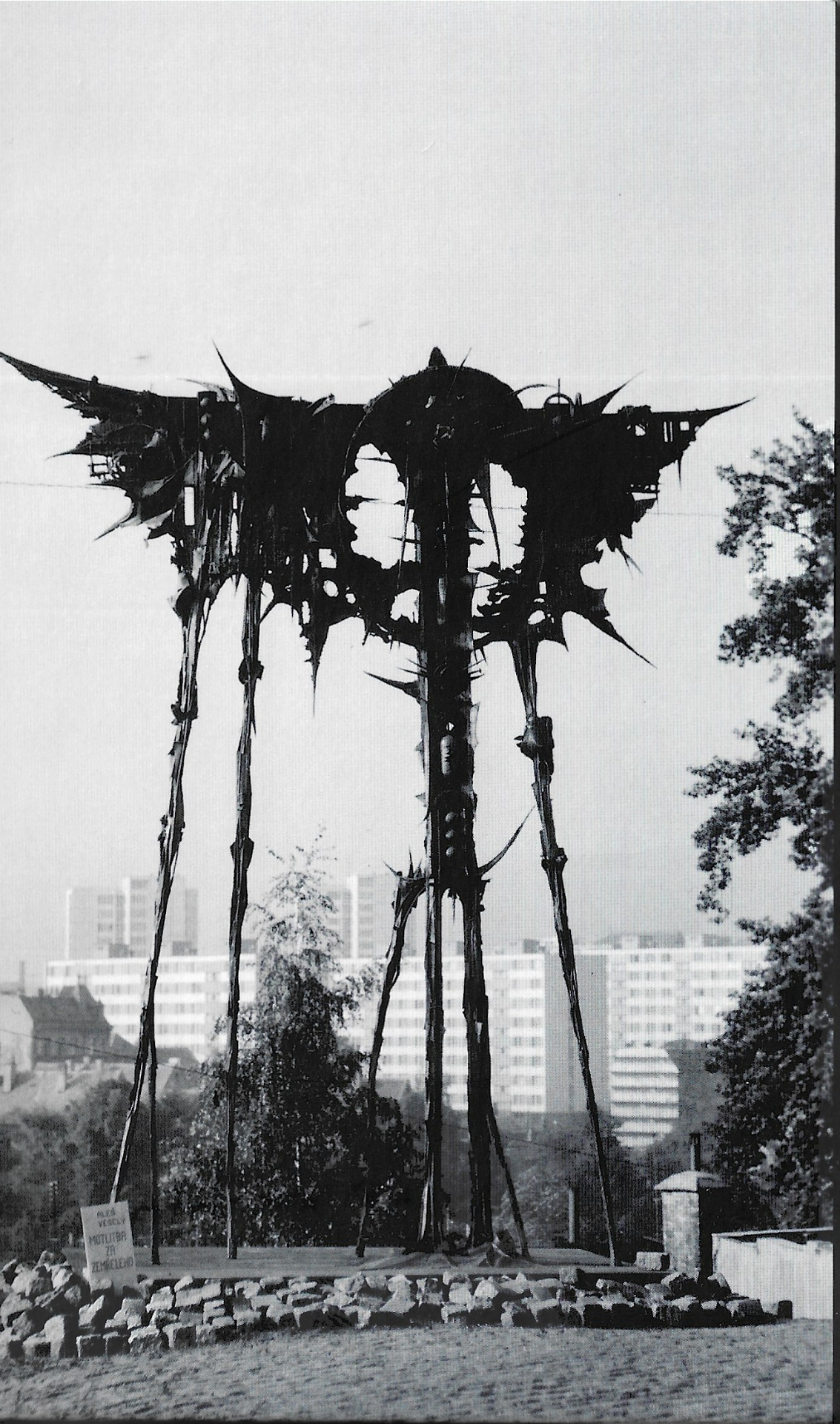 LIBEREC (lup) — Na poslední chvíli přivezly Hutní stavby na tzv. oplénu do Liberce dílo, jímž se kompletuje výstavba Socha a město. Je jím sedm a půl metru vysoká svařovaná kompozice z nerez oceli, kterou její autor Aleš Veselý vytvořil ve Vítkovických železárnách o symposiu prostorných forem v roce 1967, a kterou nazval Modlitba za zemřelé, V Liberci pro ni zvolil místo u soudu, na impozantním pozadí výškových domů u nádraží, kde její monumentalita obzvláště vyniká.