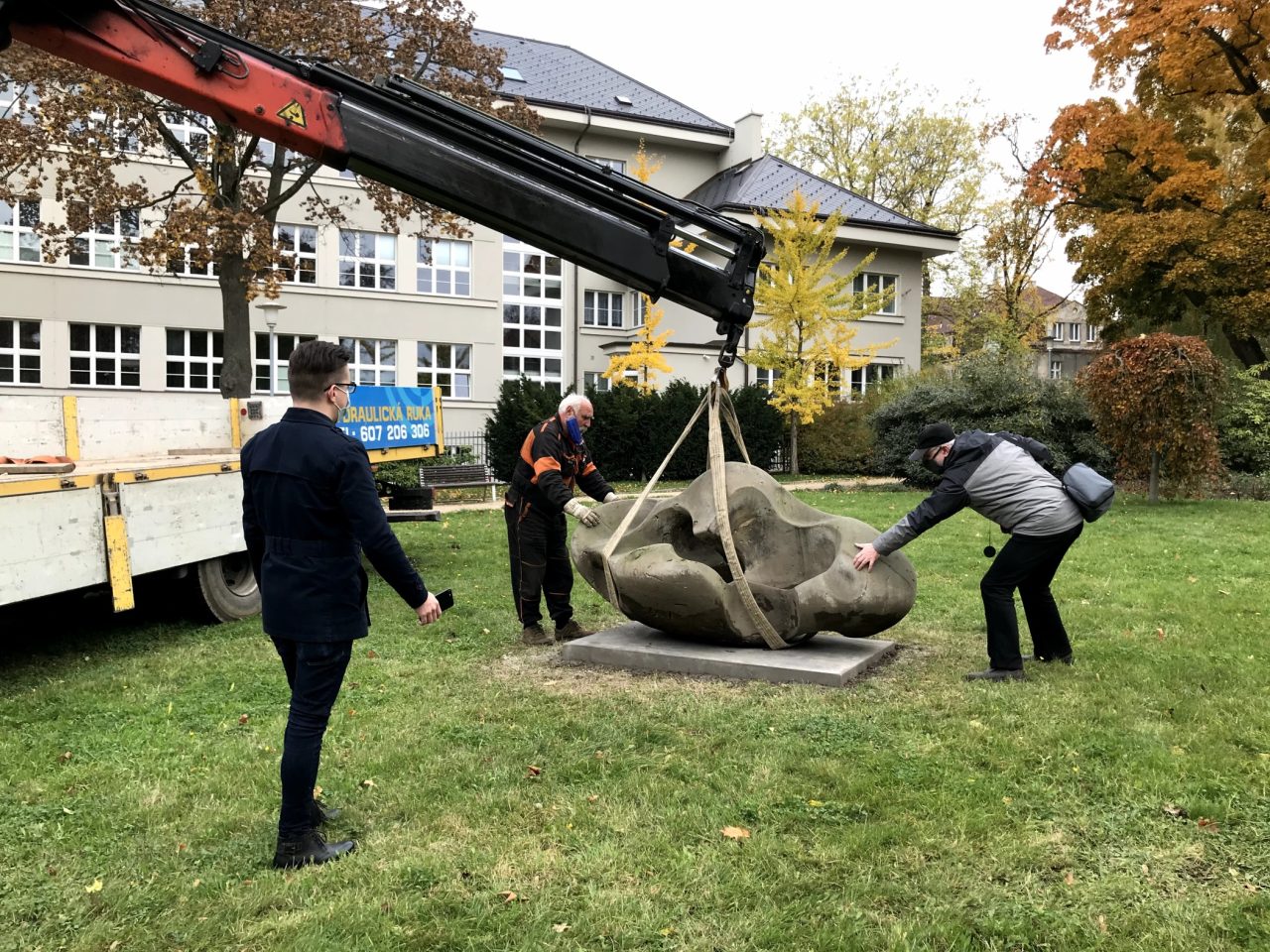 "My jsme na to upozorňovali už delší dobu, že to dílo stojí na nedůstojném místě, tak jsme vybrali právě tento parčík," říká Jindřich Gubiš ze Spolku za estetiku veřejného prostoru. "V Jablonecké ulici stála socha na hlíně, bez soklu, jsme rádi, že se tohle povedlo," dodává.