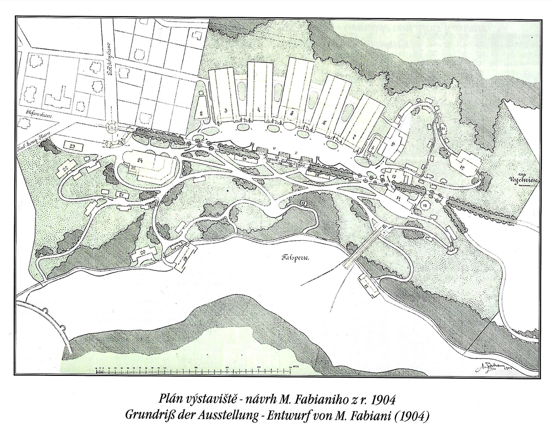 Výstavní areál se rozkládal podél dnešní Husovy ulice a zabíral celý