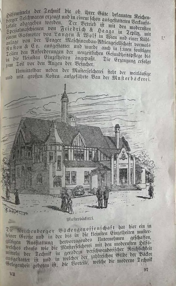 Toto byla na výstavě funkční pekárna, která zásobovala po celé 3 měsíce výstavu pečivem. Snadno rozpoznatelná budova s jediným vysokým komínem. Autor architekt Anton Möller z Varnsdorfu.